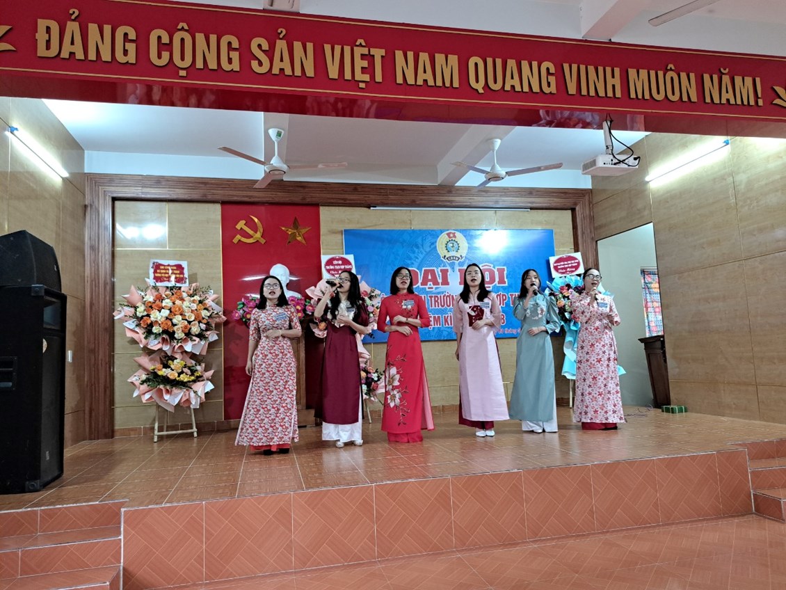 Tập thể cán bộ đoàn viên Công đoàn trường THCS Hợp Thành quyết tâm thực hiện thắng lợi Nghị quyết Đại hội Công đoàn Nhiệm kì 2023-2028.