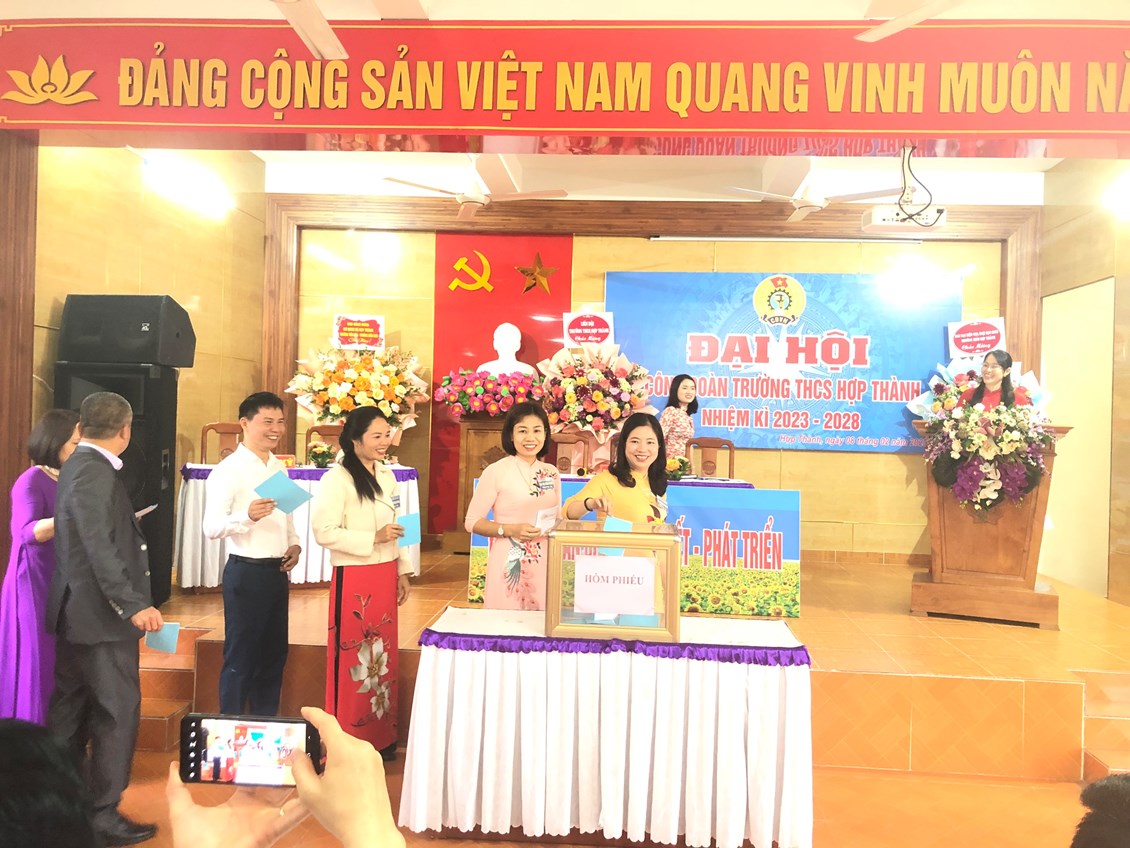 Trọng tâm là thi đua “Dạy tốt - Học tốt”, “Đổi mới, sáng tạo trong dạy học” đã được công đoàn triển khai thực hiện hiệu quả. Tại đại hội, Đ/c Nguyễn Bá Quế - Phó Chủ tịch Liên đoàn Lao động huyện Thuỷ Nguyên và đ/c Nguyễn Thị Vẻ- Bí thư Chi bộ, Hiệu trưởng nhà trường đánh giá cao những kết quả mà Công đoàn Trường THCS Hợp Thành đạt được trong nhiệm kỳ qua. Các đồng chí đề nghị Công đoàn Trường THCS Hợp Thành cần tiếp tục làm tốt công tác tuyên truyền đường lối, chủ trương của Đảng, chính sách, pháp luật của Nhà nước cho đoàn viên và người lao động; thực hiện tốt vai trò là người đại diện và bảo vệ quyền, lợi ích hợp pháp, chính đáng của người lao động.