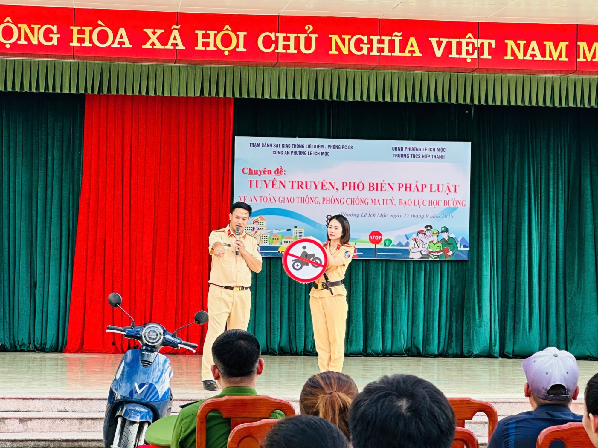 Tuyên truyền, phổ biến, giáo dục pháp luật có vai trò quan trọng góp phần giáo dục toàn diện nhân cách học sinh. Nhằm giúp học sinh có thêm kiến thức, hình thành các kỹ năng cơ bản về luật An toàn giao thông , Phòng chống ma túy và Bạo lực học đường và phát huy tính tích cực, chủ động trong tìm hiểu pháp luật, góp phần nâng cao ý thức chấp hành luật giao thông, nhận thức được tác hại và cách phòng tránh hiệu quả các chất Ma tuý, thực hiện lối sống lành mạnh, đoàn kết, tạo một môi trường giáo dục hạnh phúc, chiều qua - 17/9/2025 trường THCS Hợp Thành tổ chức chuyên đề “ Tuyên truyền, phổ biến pháp luật về An toàn giao thông, phòng chống ma túy và Bạo lực học đường” năm học 2025-2026.